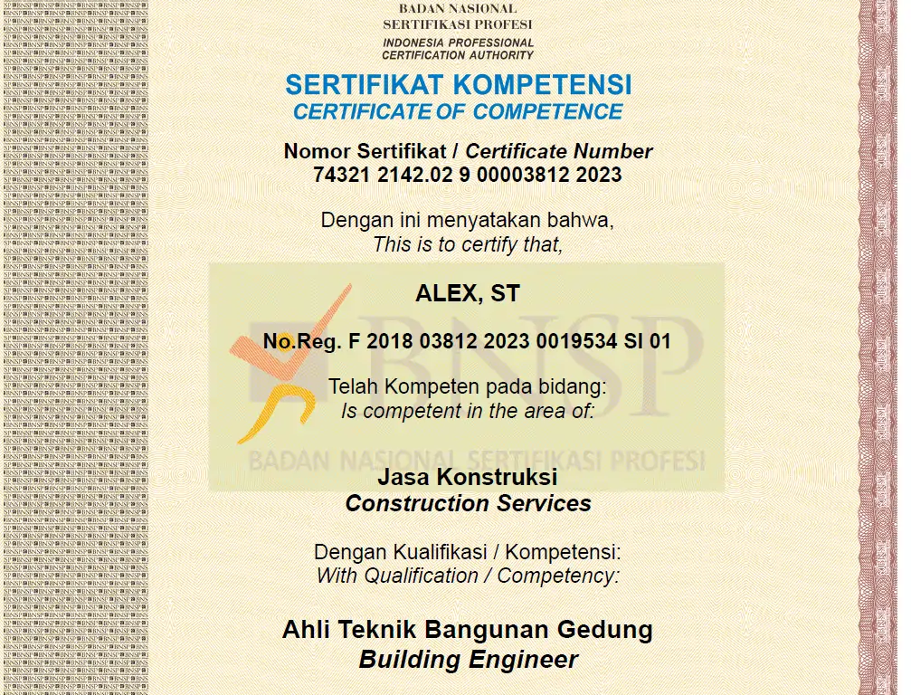 Bapak Alex memiliki memiliki jaringan tenaga ahli yang berkualitas dan berpengalaman, yang siap membantu proyek-proyek konstruksi dan perizinan PBG-SLF.